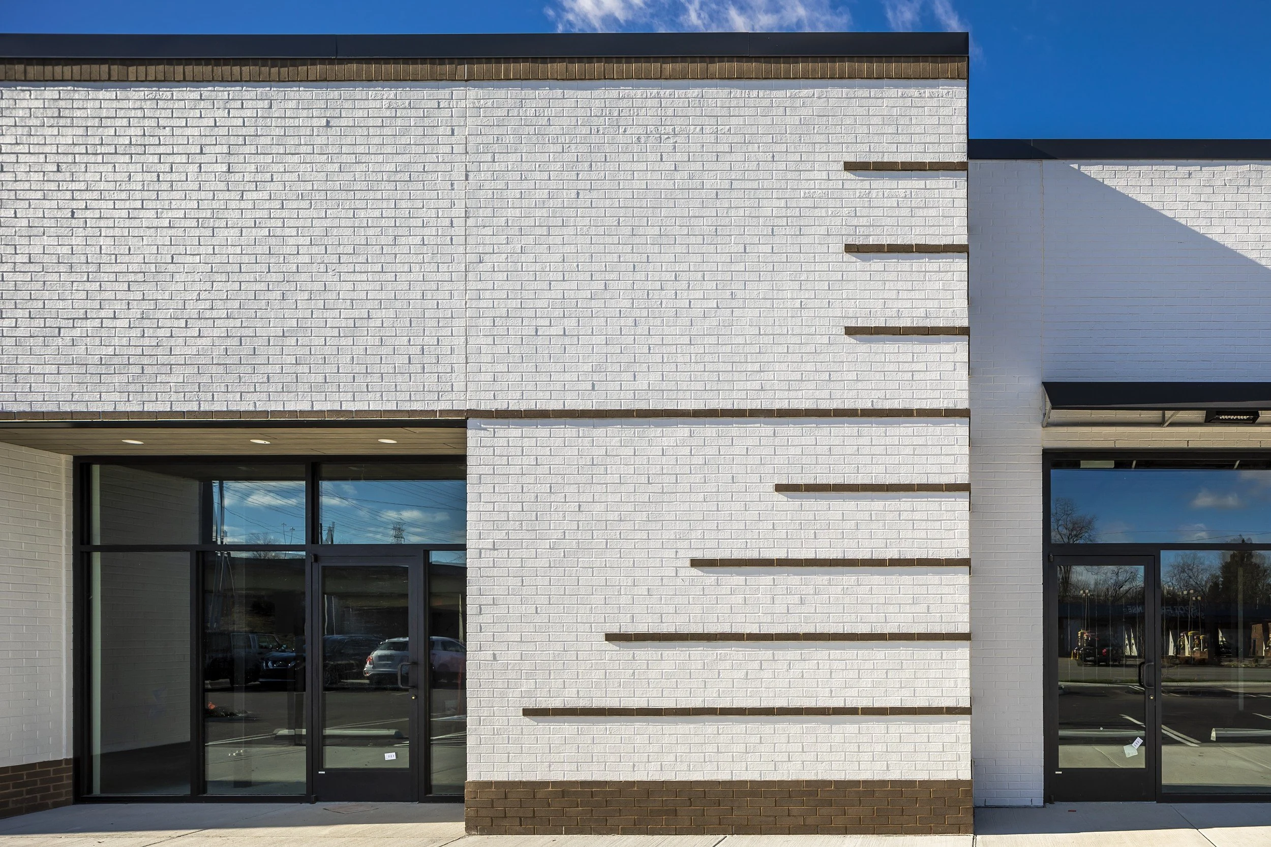 The exterior of the building takes cues from nearby buildings on Eighth Avenue South, while featuring distinct high parapets that bring attention to each of the end-cap tenants. A refined palette of materials, which includes brick and stucco with metal and wood accents, adds character to the overall building renovation. Special attention was given to the brick detailing and color to allow each tenant space to have a distinct look and feel while still complementing the composition as a whole. Each tenant space will also include new low-e aluminum storefront systems optimized for retail environments, in addition to metal canopy awnings or fabric blade awnings (depending on elevation) for shade and weather protection.